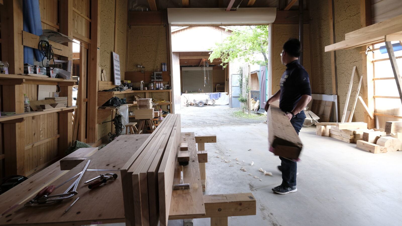 造家工房は、職人たちが集まる「のぼの職人村」を運営しています。大工の作業場だけでなく、焼きたてのパン工房やカフェも併設された、木の香りとぬくもりが漂う場所。職人も、スタッフも、地域の人も集まるオープンな雰囲気です。