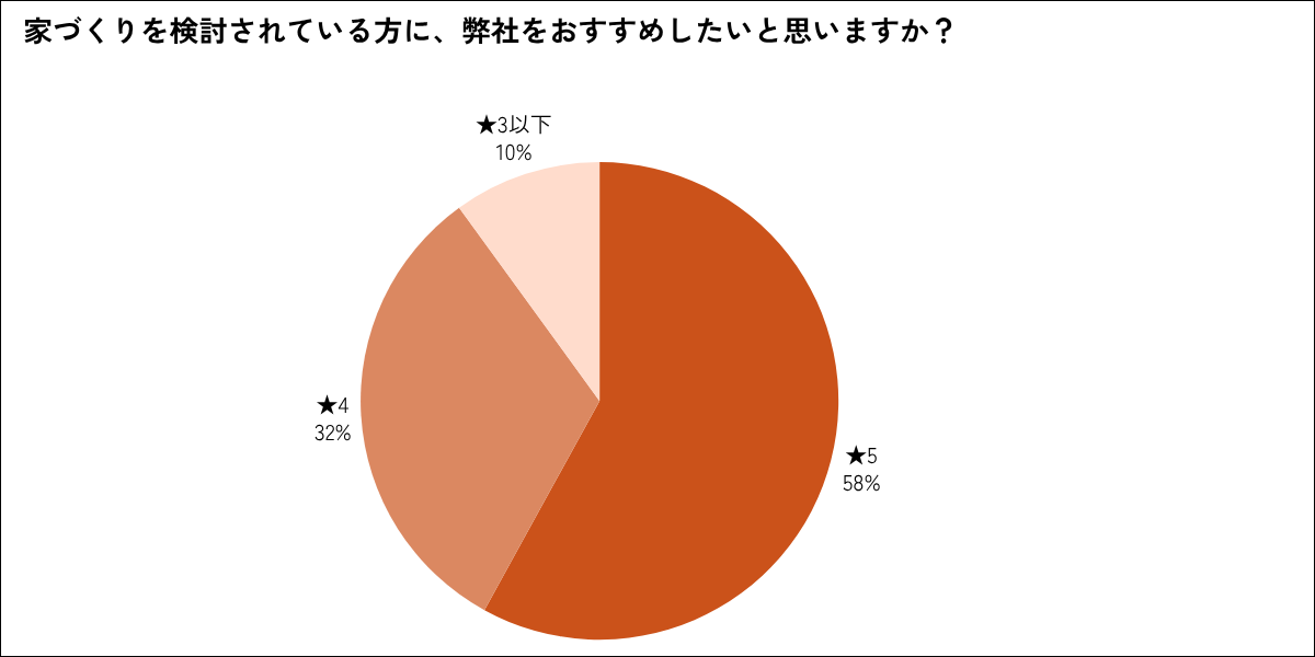 約9割の住まい手さんが、★4以上(おすすめしたい)と評価してくださいました。